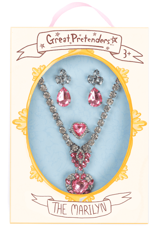 Halsbandsset The Marilyn med 2 clips- örhängen & 1 ring, Rosa/Silver - Great Pretenders