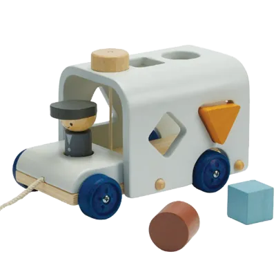 Klosslåda buss i trä, Gul, Sorting Bus - PlanToys