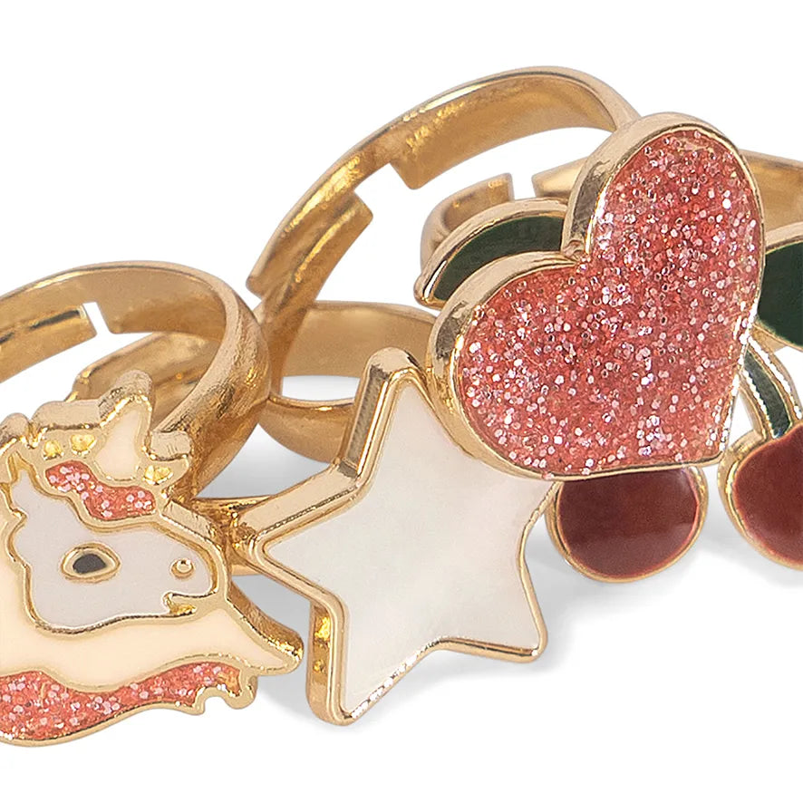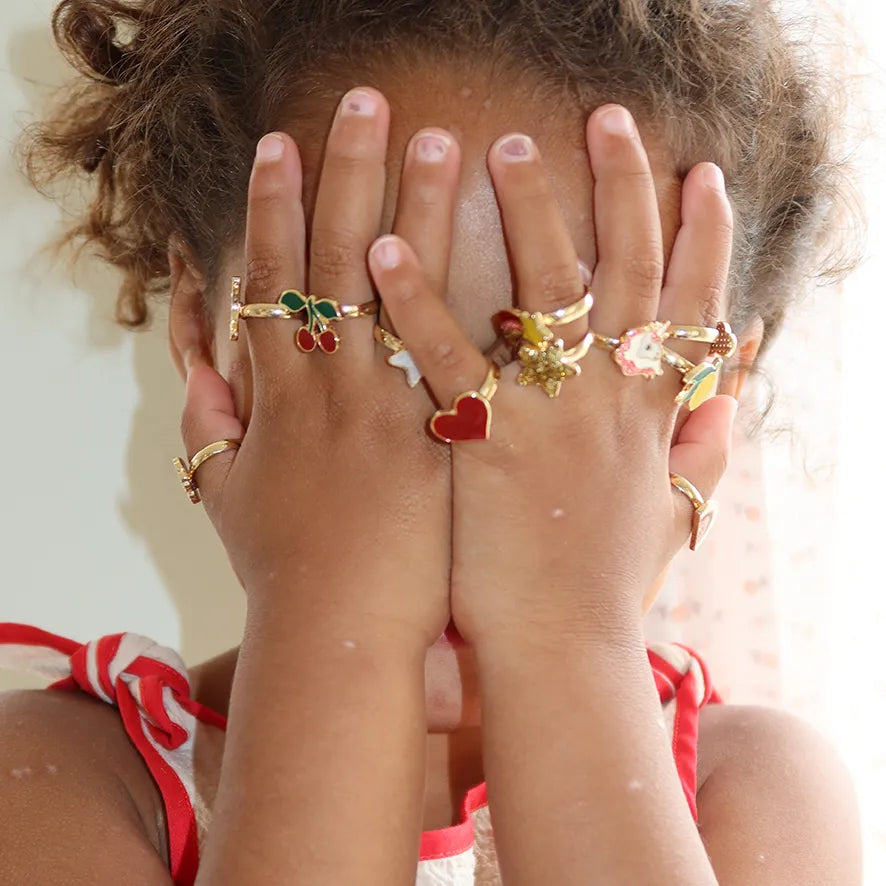 Justerbara ringar med dekorativa motiv som passar för små fingrar