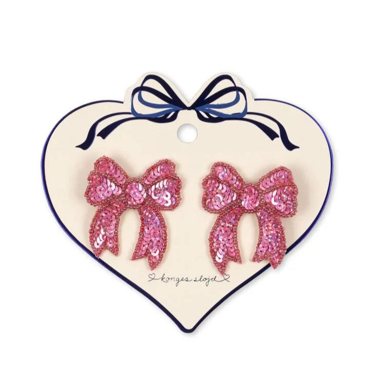 2-pack Sequin Bow Hair Clip från Konges Sløjd är ett charmigt set med två handgjorda rosetter, täckta av gnistrande paljetter i drömlika nyanser. Varje rosett är noggrant formad och fästs enkelt med en liten, diskret järnklämma som sitter säkert och ser ljuvlig ut i håret.