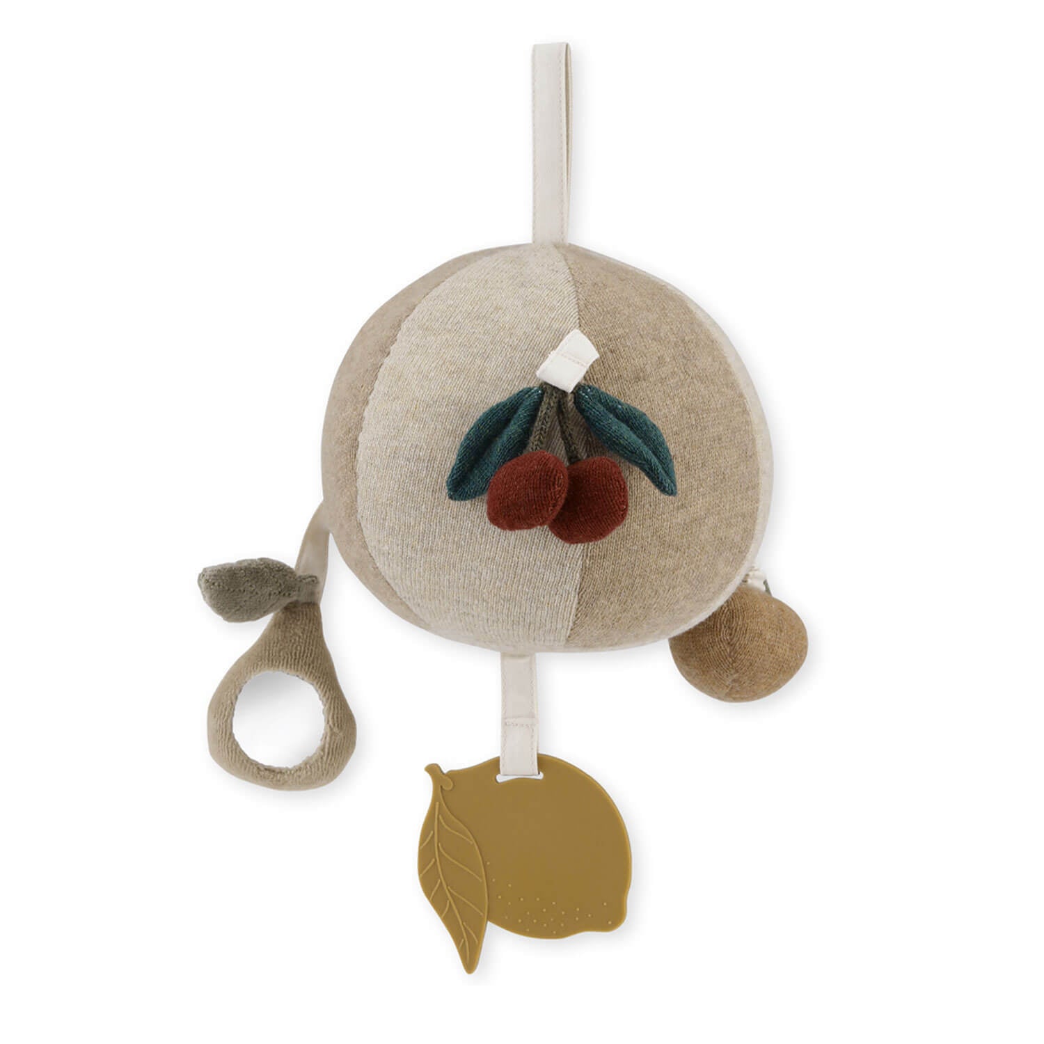Designad med en plastspegel och fullpackad med utvecklingsfunktioner perfekta för små händer att hålla i. Den har olika texturer, en skallra, ett päron med en spegel och små körsbär. Leksaken har också en praktisk upphängningsögla.