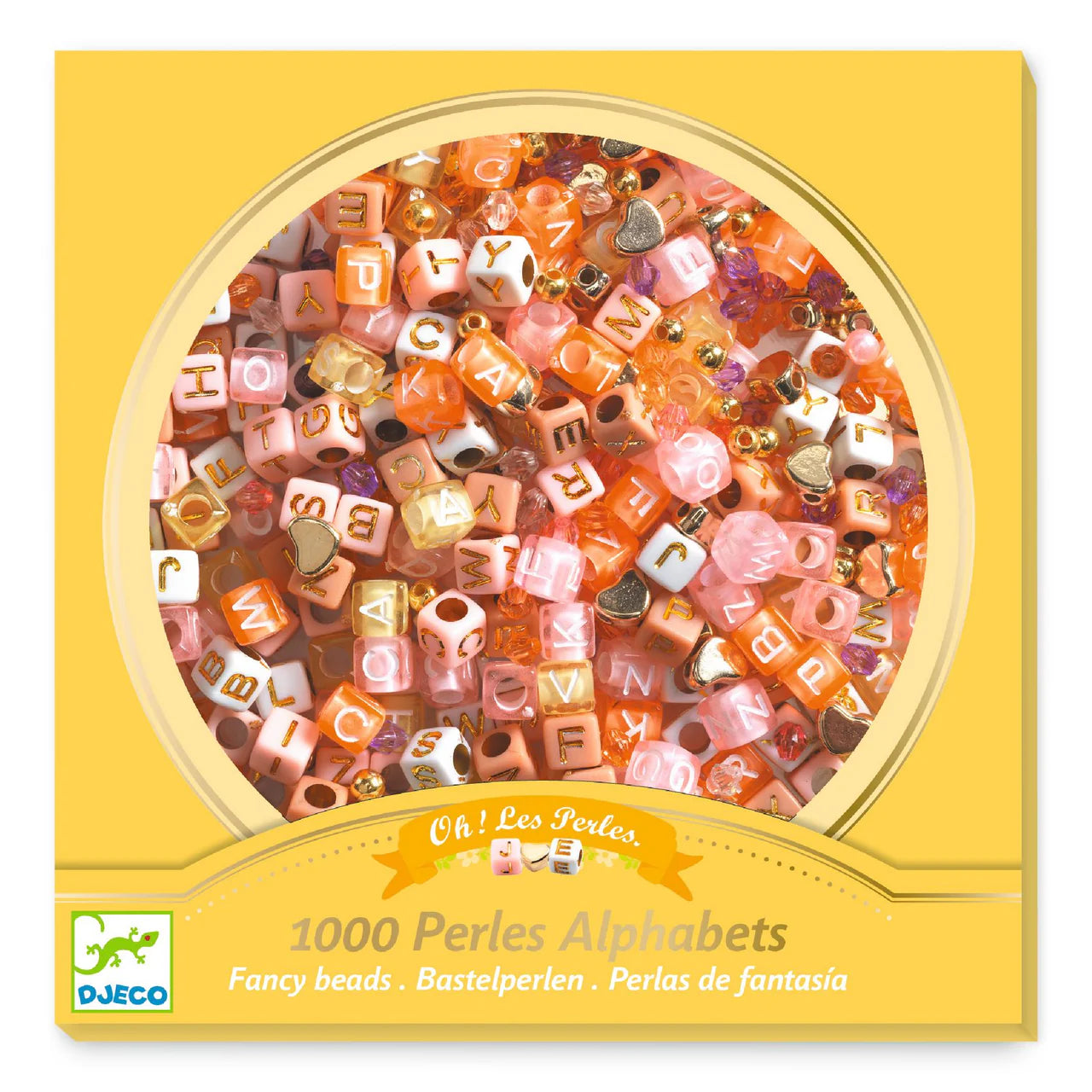 Guldfärgade bokstavspärlor (1000st), Alphabet Beads, Gold - Djeco