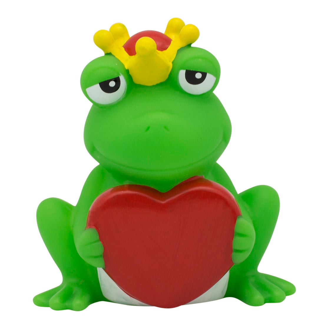 Badanka i form av en groda som håller en hjärt-formad skylt.