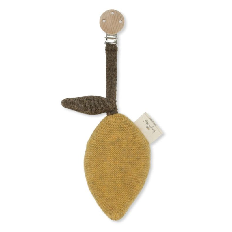 Den vackra senapsgula färgen ger en fräsch och modern touch till leksaken. Den är lämplig för bebisar i alla åldrar och kommer säkert att bli en favorit i barnvagnen eller spjälsängen.
