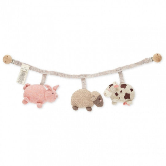 Spänn fast det här söta barnvagnshänget i sufletten på barnvagnen. Hänget clipsar man fast med metallclips.