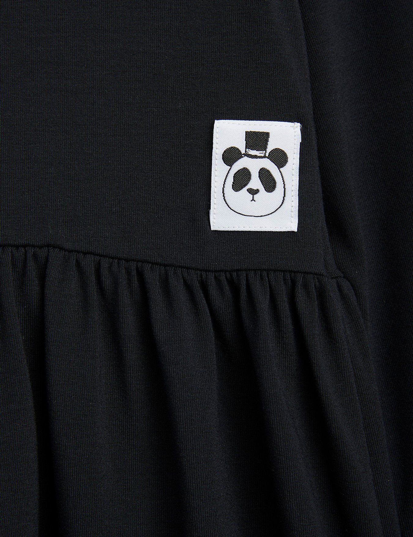 Svart långärmad klänning tillverkad av mjuk TENCEL™ Lyocell med komfortstretch. Klänningen är designad med en hög midja, luftig kjol och ett påsytt Mini Rodini Panda-märke framtill.