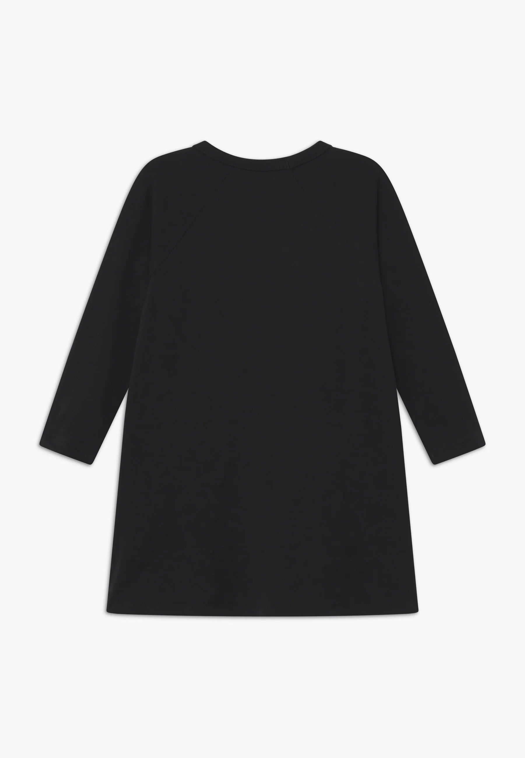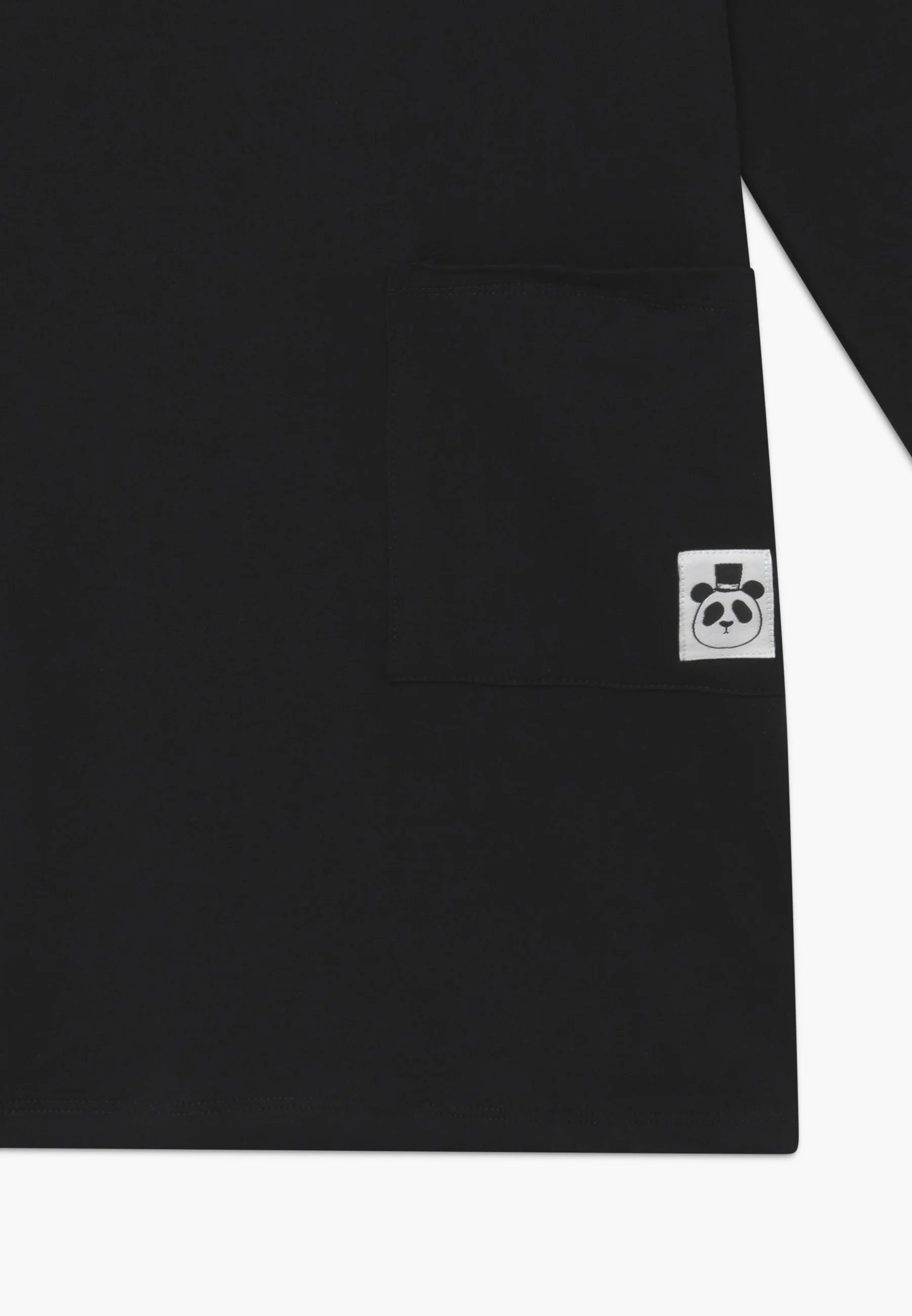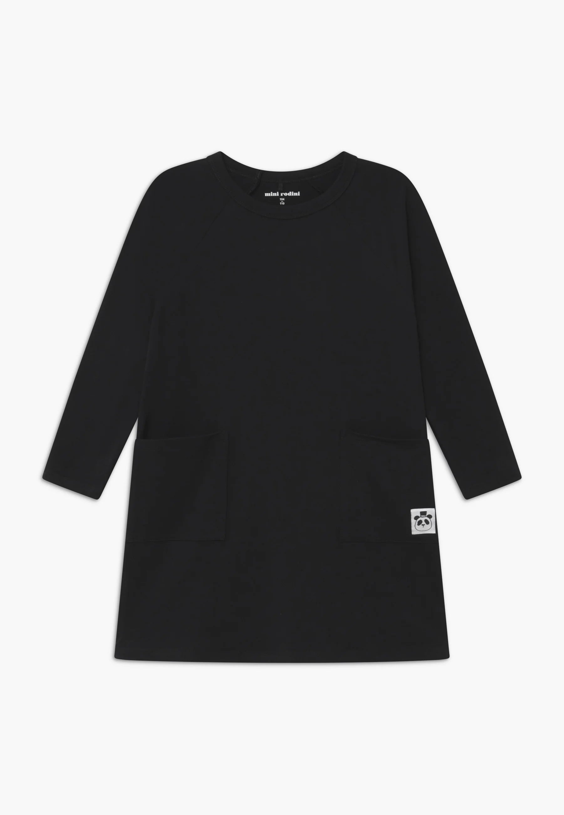 Svart långärmad klänning tillverkad av mjuk TENCEL™ Lyocell med komfortstretch. Klänningen är designad med en rak form, fickor och ett påsytt Mini Rodini Panda-märke framtill.