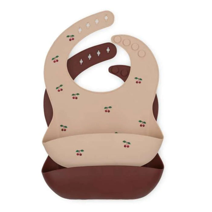 Haklappar 2-Pack, Silicone Bibs, Cherry/Mocca - Konges Sløjd