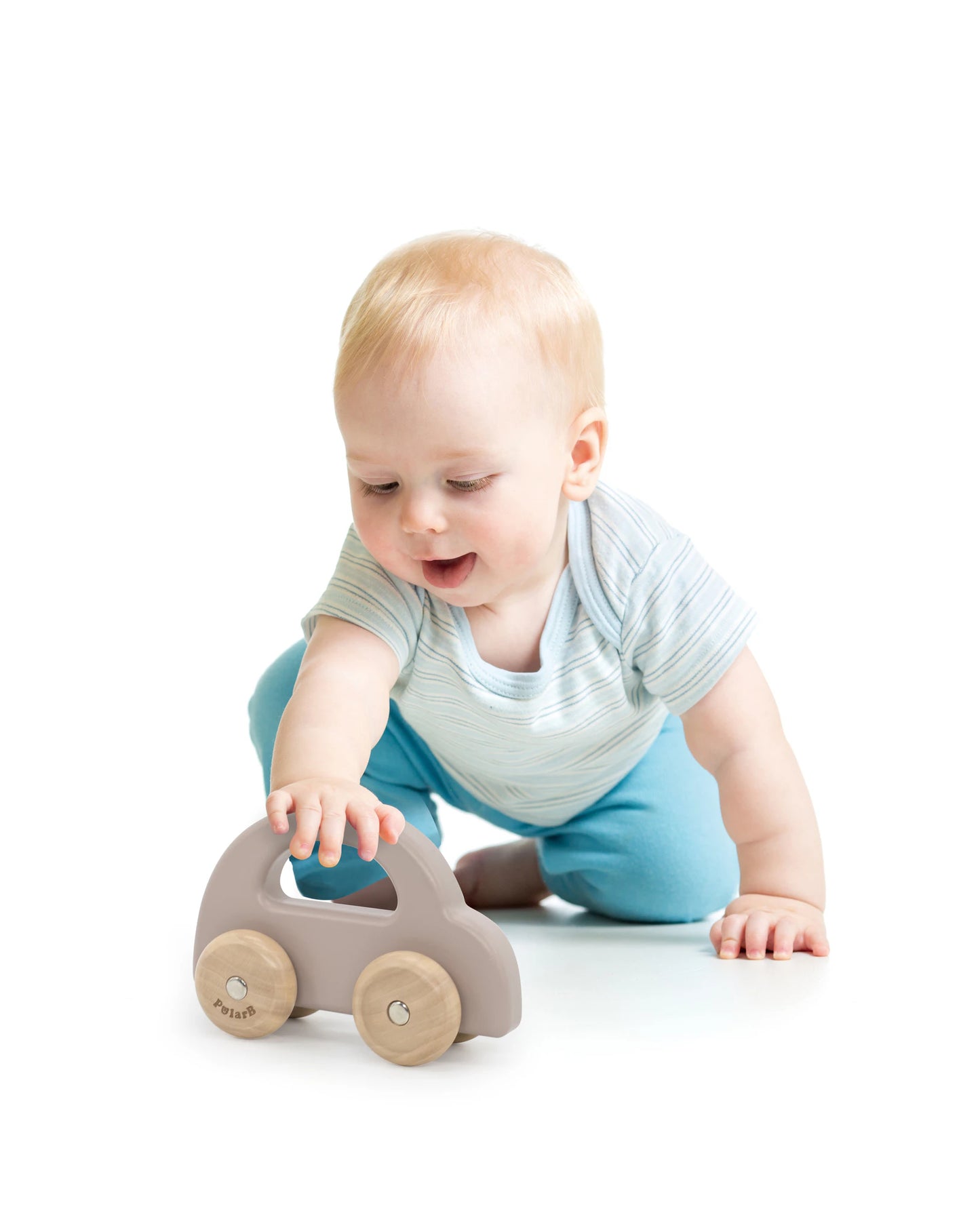Denna träbil inspirerar till lek samtidigt som den tränar upp barnets motoriska färdigheter och koordinationsförmåga.