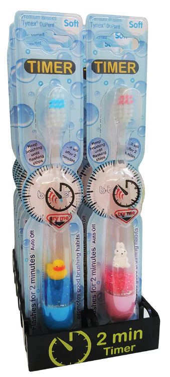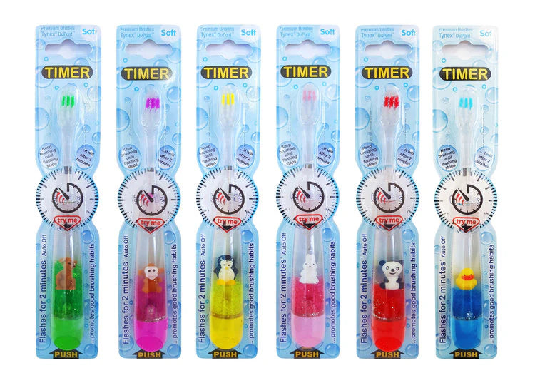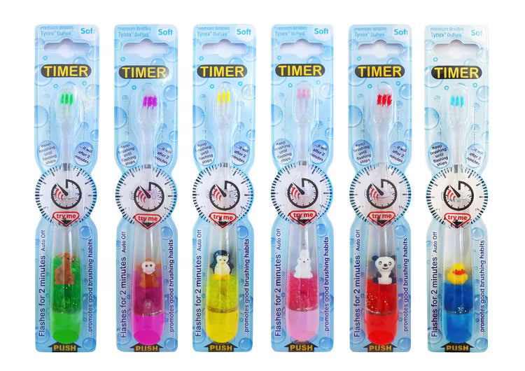 Med dessa blinkande tandborstar blir borstningen extra rolig. Tandborsten har en inbyggd timer som gör att den blinkar i 2 minuter.
