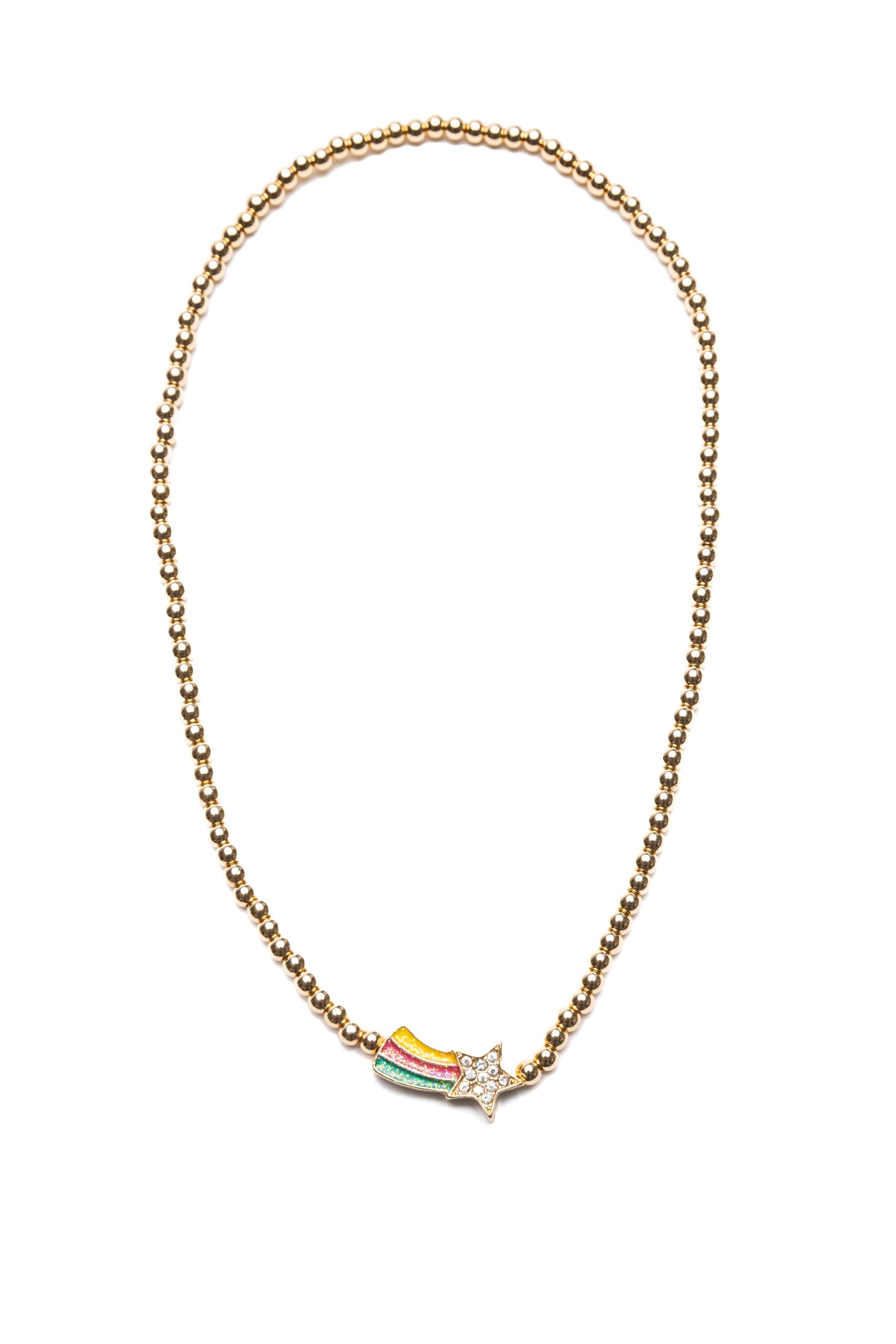 Tillverkade med en blandning av guld- och regnbågspärlor, berättar varje halsband en historia om livfullhet och lycka. Pyntade med lekfulla detaljer som blommor, enhörningar, smileys och regnbågar, återger dessa halsband Taylors upplyftande estetik och skapar en känsla av positivitet och samhörighet.