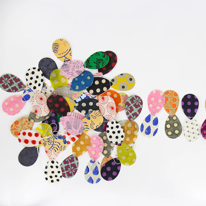 Denna långa pappersgirlang kan hängas både vertikalt och horisontellt. Den fungerar fint både som en glad festdekoration men också i ett barnrum eller varför inte i hallen?