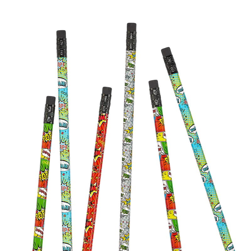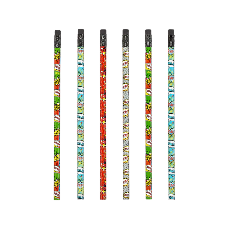 Ooly Comic Attack är ett färgstarkt 12-pack grafitpennor med motiv inspirerade av serietidningar. Pennorna har en klassisk blyertsspets och praktiskt suddgummi upptill – redo för skiss, skriv eller kreativitet när som helst. Med sin iögonfallande design blir de lika mycket dekoration som skrivredskap.