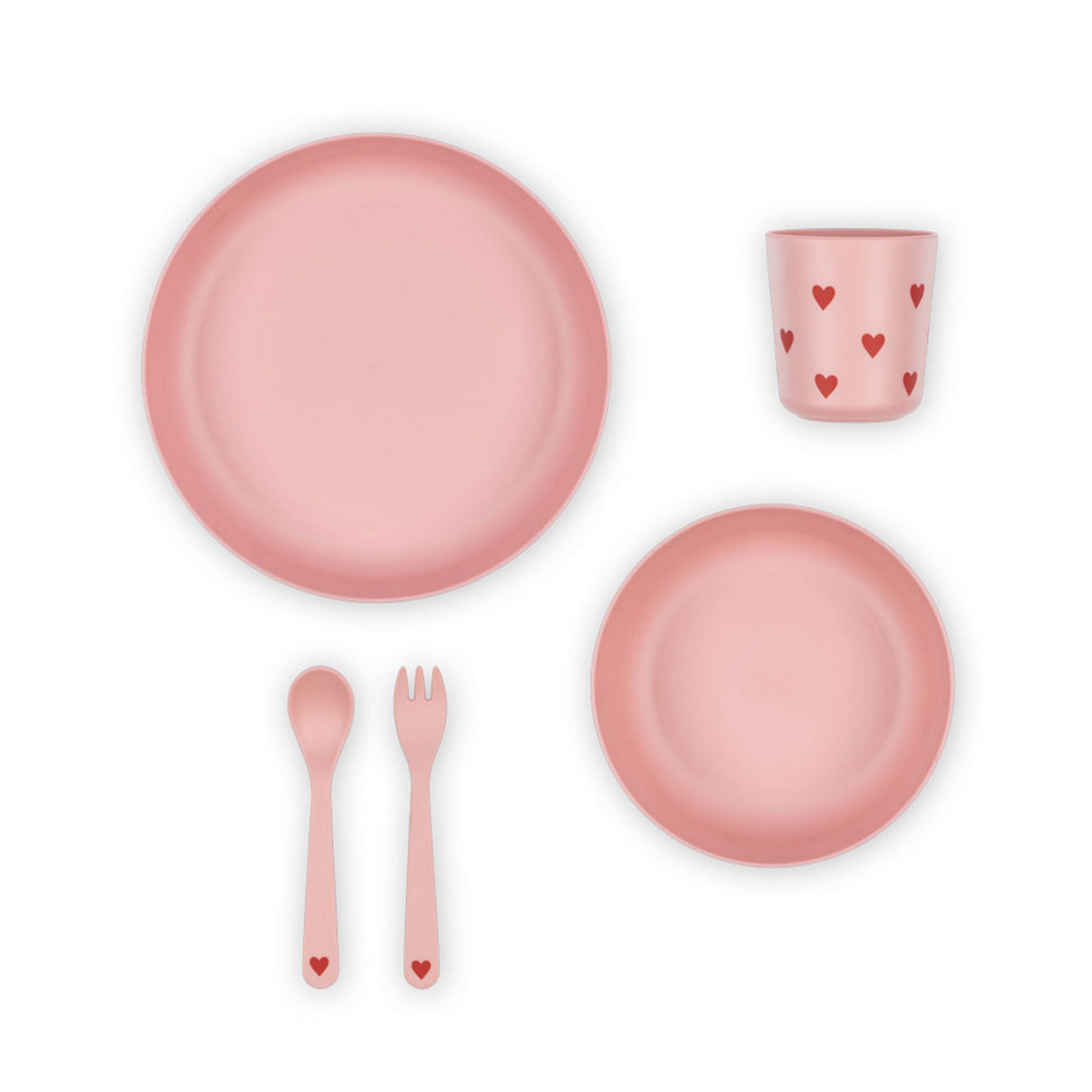 Gör måltiderna lite roligare med detta fina matset från Konges Sløjd, ett rosa matset dekorerat med hjärtan som barn älskar. Perfekt för små händer som övar på att äta själva – både praktiskt och charmigt!