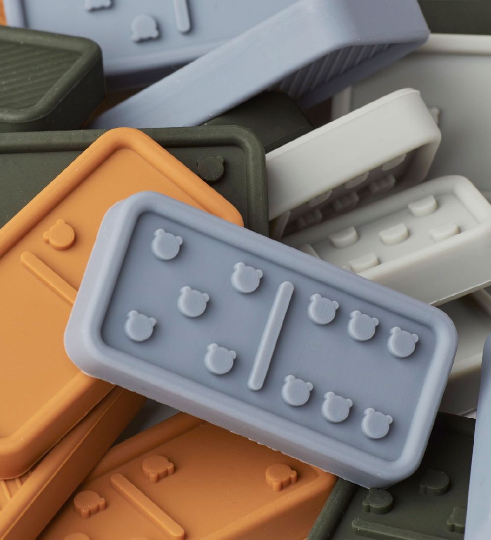 Liewood domino-pjäser gör det klassiska spelet enkelt och roligt för de små, med små björn ansikten som visar antalet ögon på bitarna. Bitarna är i en utsökt silikon, så de är roliga att spela med och bekväma att hålla. De kommer i en praktisk låda så att de är lätta att hålla ihop och underlättar transport.