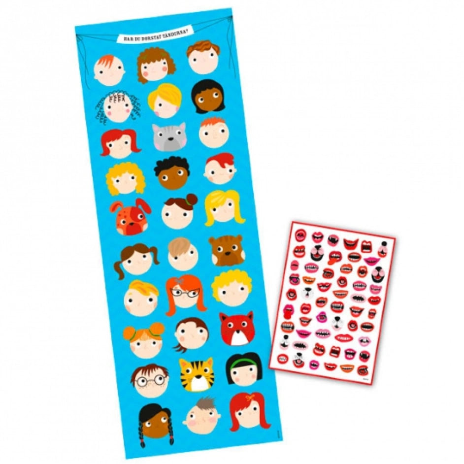 Efter att barnen har borstat tänderna kan de sedan klistra ett klistermärke vid varje tandborstning. Klistermärkena är utformade för att vara roliga och motiverande, och kommer i olika designer som barnen kan välja mellan. Genom att klistra ett klistermärke vid varje tandborstning kan barnen se hur många gånger de har borstat tänderna och känna sig motiverade att fortsätta.