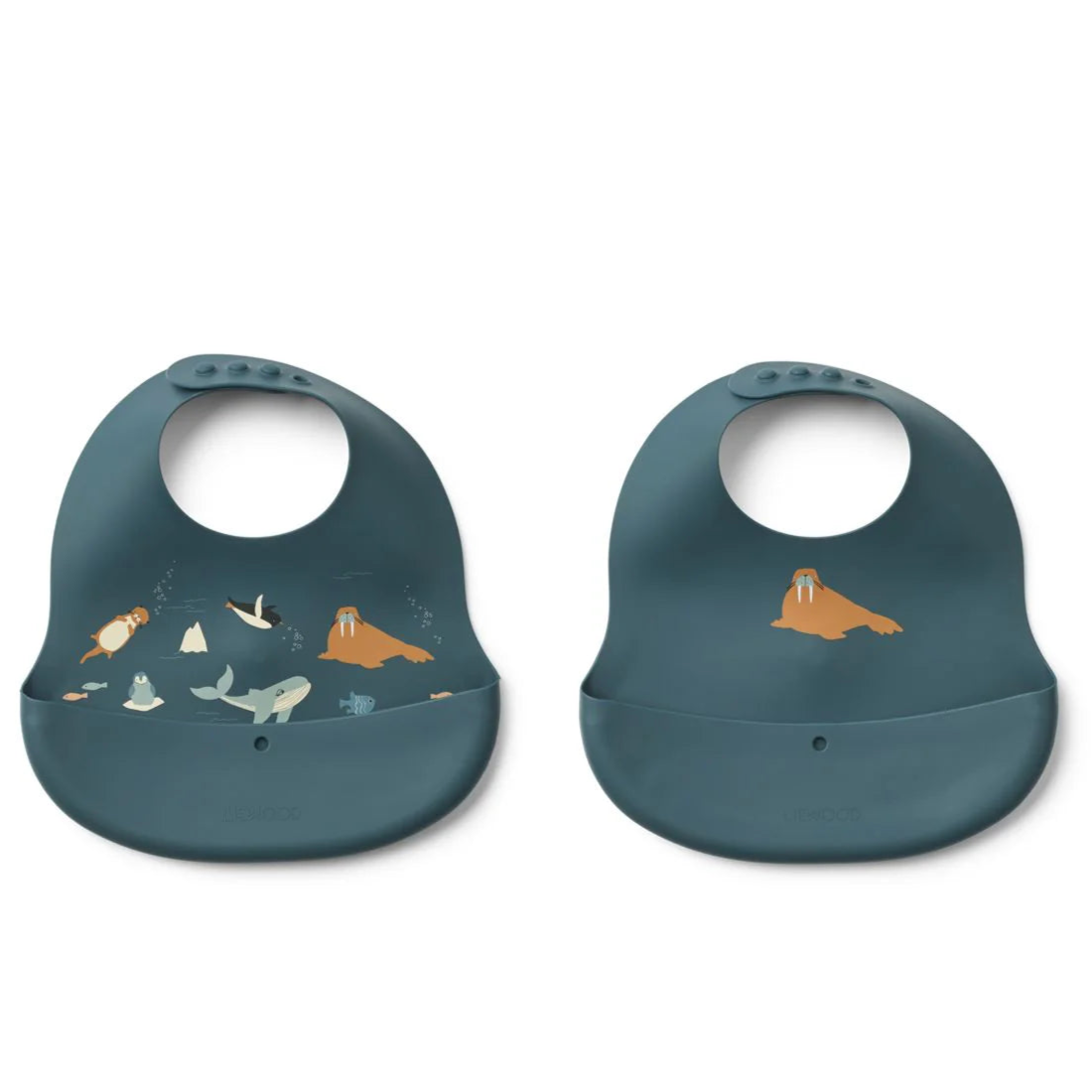 Haklappar 2-pack, Ember Printed Bib, Arctic Sea/Oceanview - Liewood