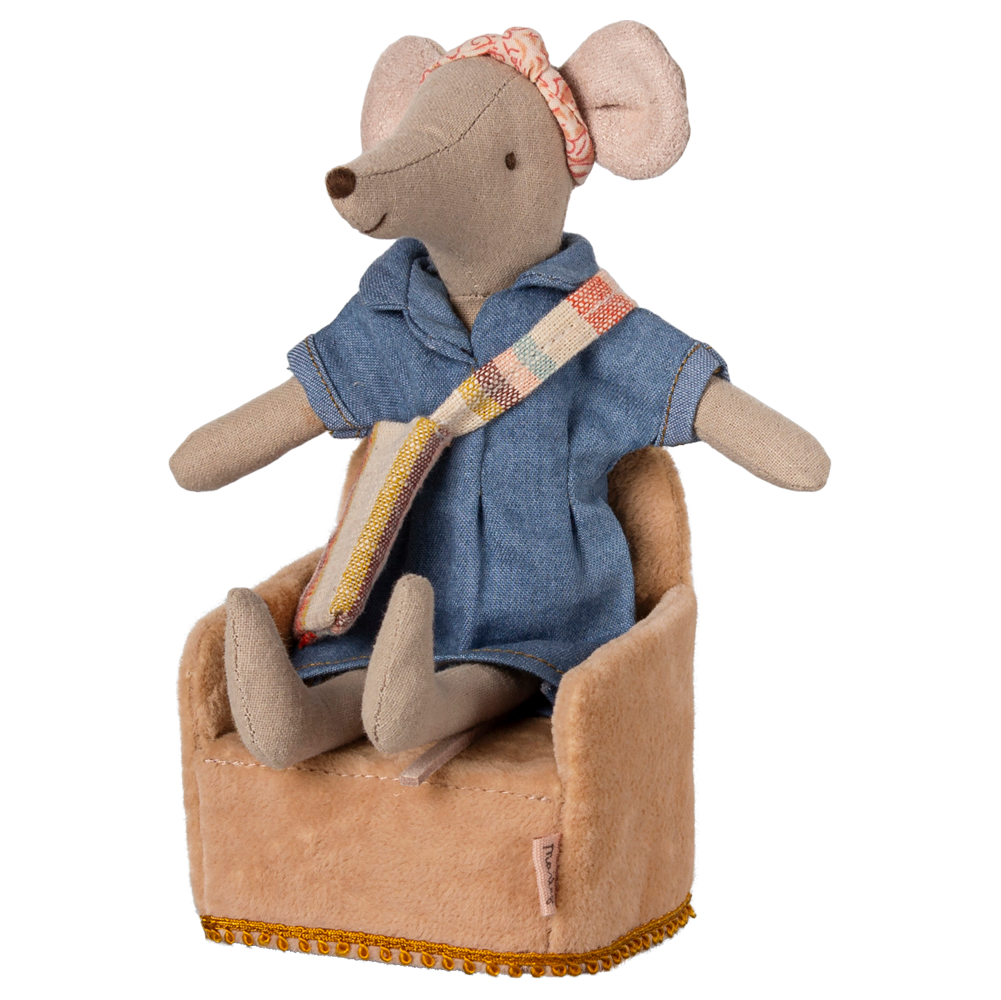 Miniatyr, Rosa Fåtölj, Mus - Maileg