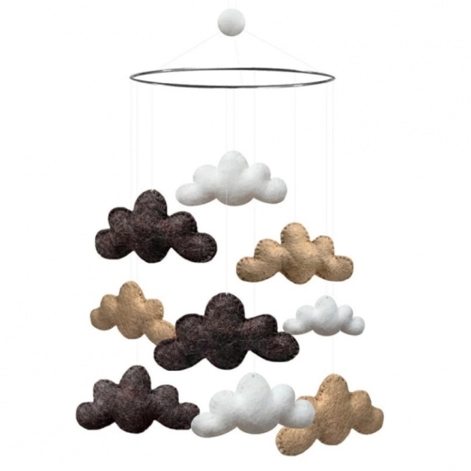 Fantastiskt fin handgjord mobil i tovad och stoppad ull. Häng den över spjälsängen eller skötbordet för att ge ditt barn något fint att titta på. Dessutom en vacker inredningsdetalj.