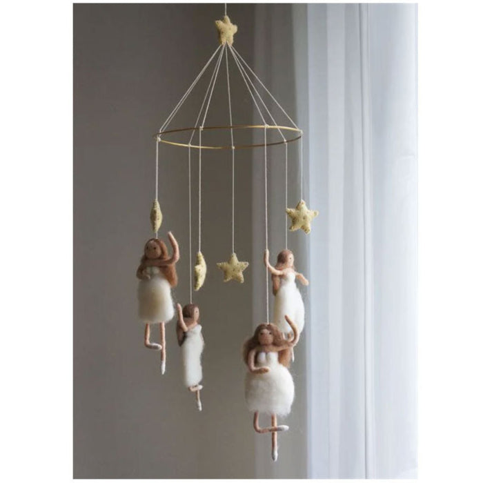 En så söt och vacker babymobil med ballerinor och stjärnor. Perfekt present till en babyshower, födelsedag eller som mamma-present. Produkt: Produkten är handgjord - varje produkt är därför unik och små variationer i form bör förväntas.