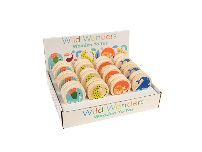 Denna jojo i trä kommer i fyra olika djurmotiv från serien Wild Wonders. Val, lejon, leopard och elefant. En underbar klassisk leksak för alla åldrar.