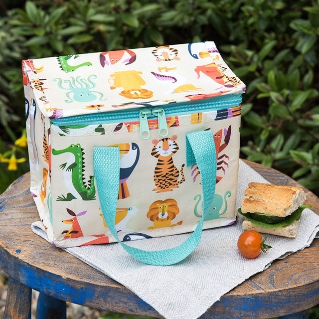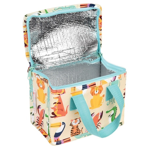 Rex London Insulated Lunch Bag Wild Animals är ett söt och praktisk liten kylväska gjord i fin design. Kylväskan, som mäter 21 x 16 x 12 cm, är gjord återvunnet material med kyl-isolerande insida. Rex London Insulated Lunchbag är ihopvikbar, vilket gör att den tar liten plats när den inte används. En liten kylväska är perfekt tex till utflykten, till bil-, buss- och tågresan eller för mat och dryck till stranden.