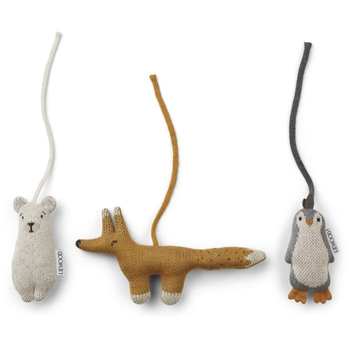 Upptäck de mjuka och charmiga leksakerna från Liewood – perfekta för ditt babygym! Detta 3-pack innehåller en söt isbjörn, en lekfull räv och en gullig pingvin. Leksakerna är lätta att fästa på vilket babygym som helst, vilket gör dem både praktiska och underhållande för din lilla.