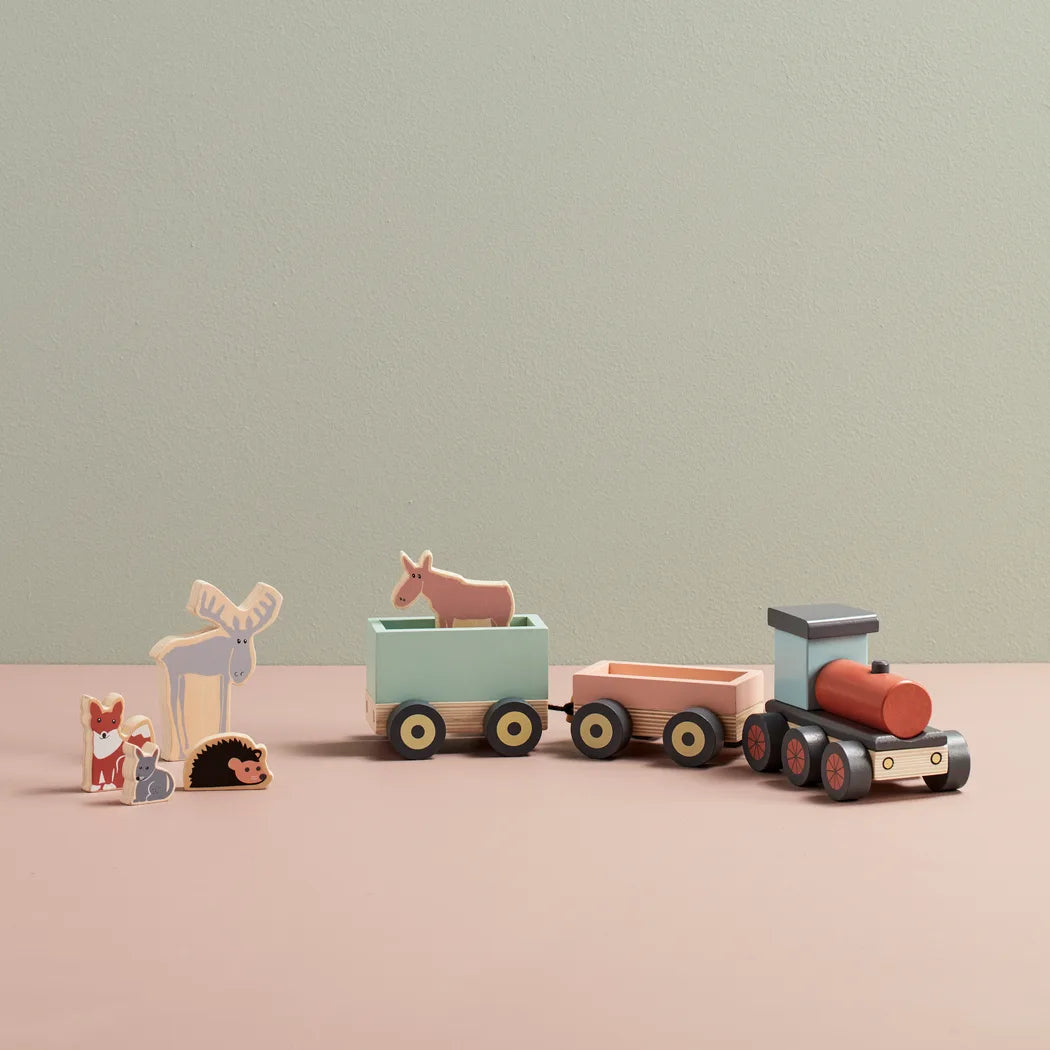 - Fem olika djurfigurer ingår och kan få följa med på tågresan.