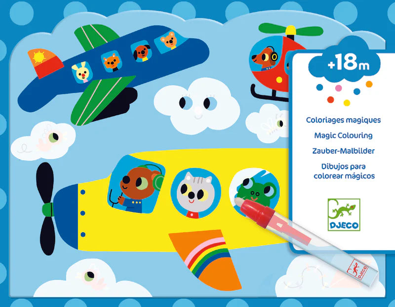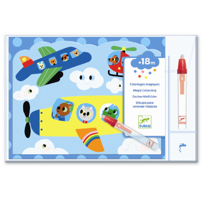 Ett perfekt kit för de yngre barnen när de ska få måla för första gången. Pennan fyller man med vatten och när man målar över de vita områdena på bilden dyker det upp spännande överraskningar på motivet. Den magiska pennan och plattorna man målar på kan användas om och om igen.