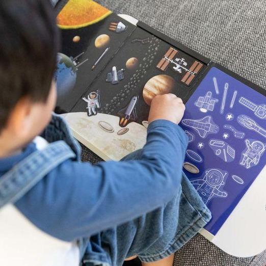 Magna Carry Space Explorer från Tiger Tribe tar barnen med på ett äventyr bland planeter och stjärnor. Bygg egna scener med raketer, månbaser och astronauter med hjälp av magnetiska figurer. Den vikbara lekscenen gör det enkelt att ta med och lika roligt att städa ihop som att leka.