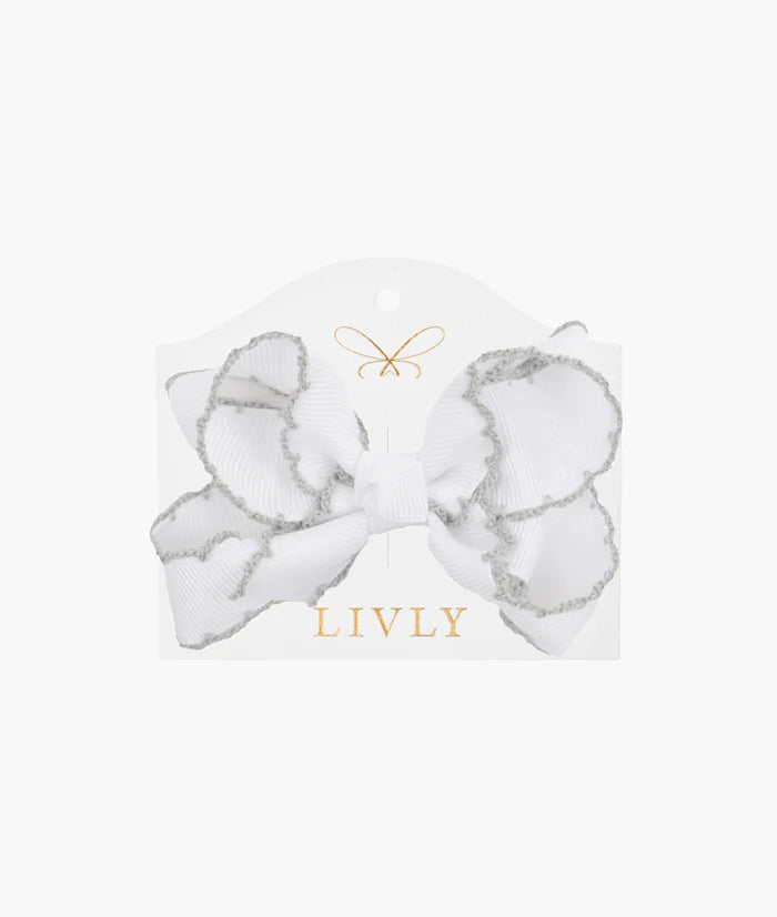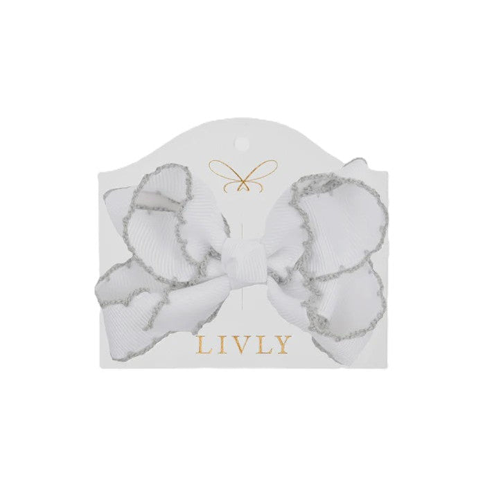 Rosett 8,5 cm, Vit med grå kant, MEDIUM PICOT BOW SNOW ANGEL - Livly