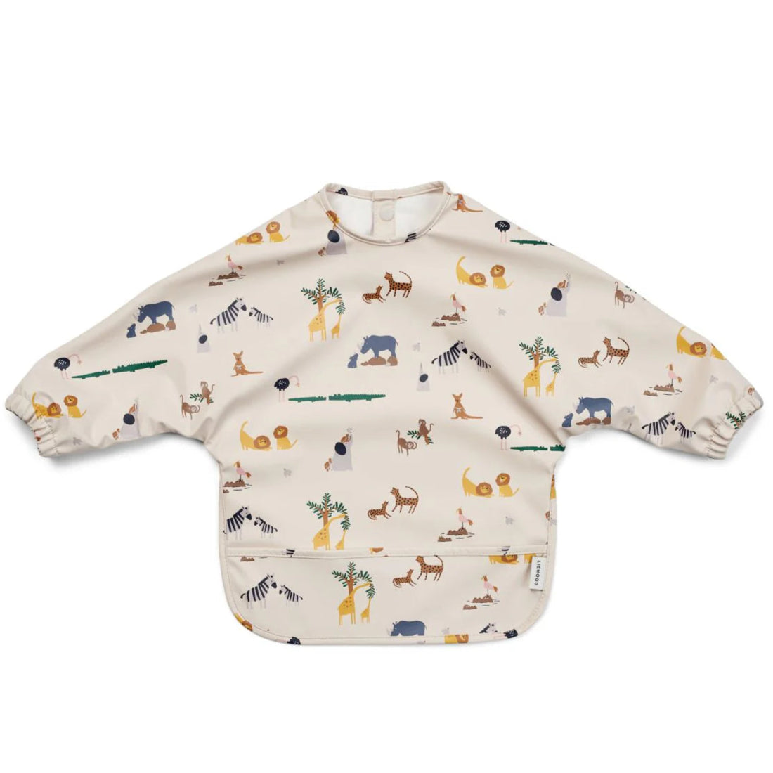 Praktisk cape haklapp med långa ärmar och lekfullt tryck