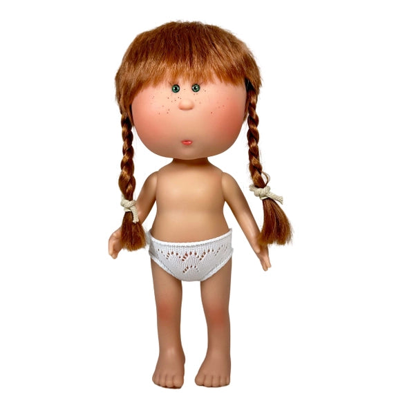 Dockan Mia har ett realistiskt utseende med uttrycksfulla ögon, vackra ansiktsdrag och mjukt, rödlätt hår friserat i två söta flätor, som går att borsta och styla. Perfekt att klä upp i olika dockkläder efter eget val! 👗