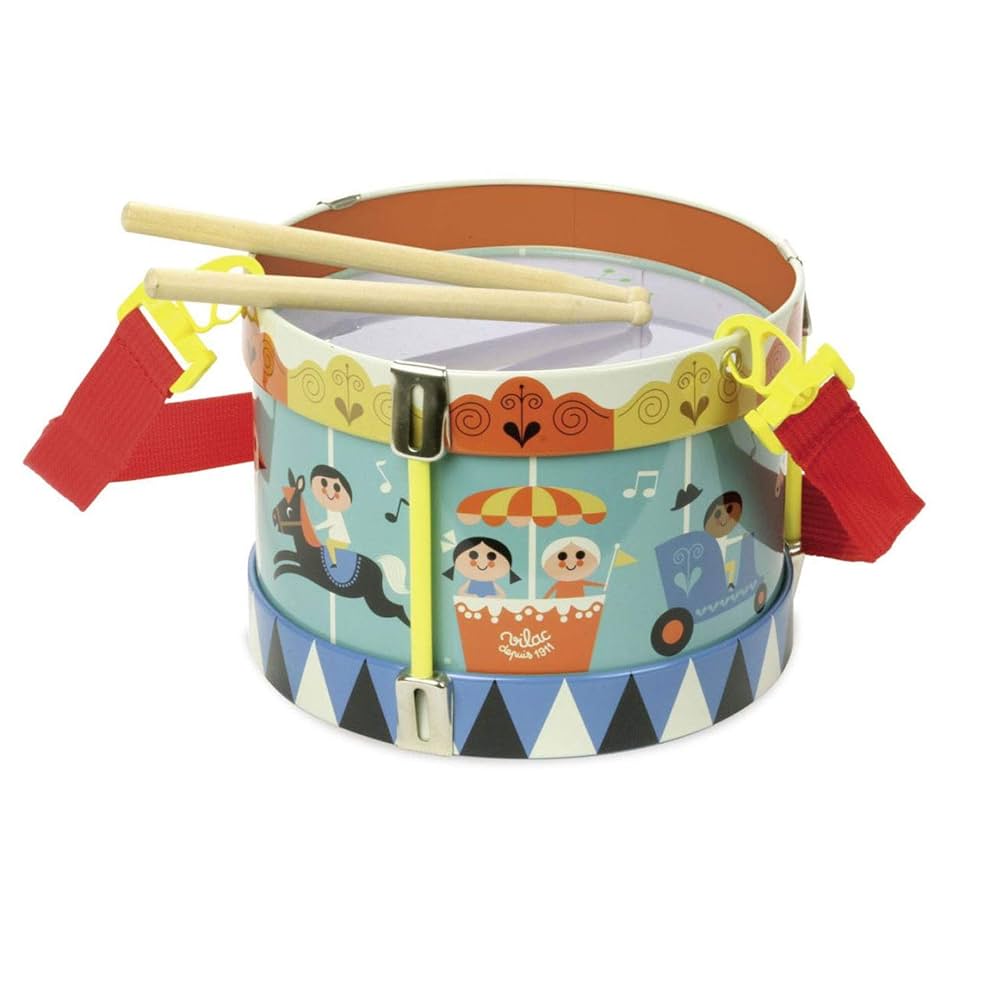 En söt trumma med en karusell målad längs kanterna. Perfekt för den lilla trummaren.