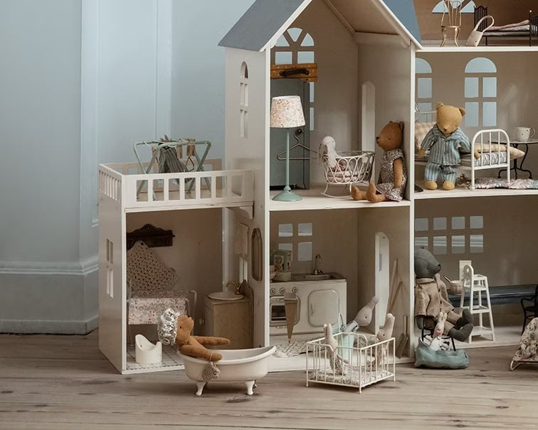 Miniatyrhyllan från Maileg är en liten vintagehylla i trä med charmig patina. Hyllan är gjord för dockhus och passar perfekt i det fina dockhuset. Hyllan limmas enkelt fast på väggen, men kan inte flyttas när den väl är placerad. Använd den som kökshylla i det söta dockhuset.