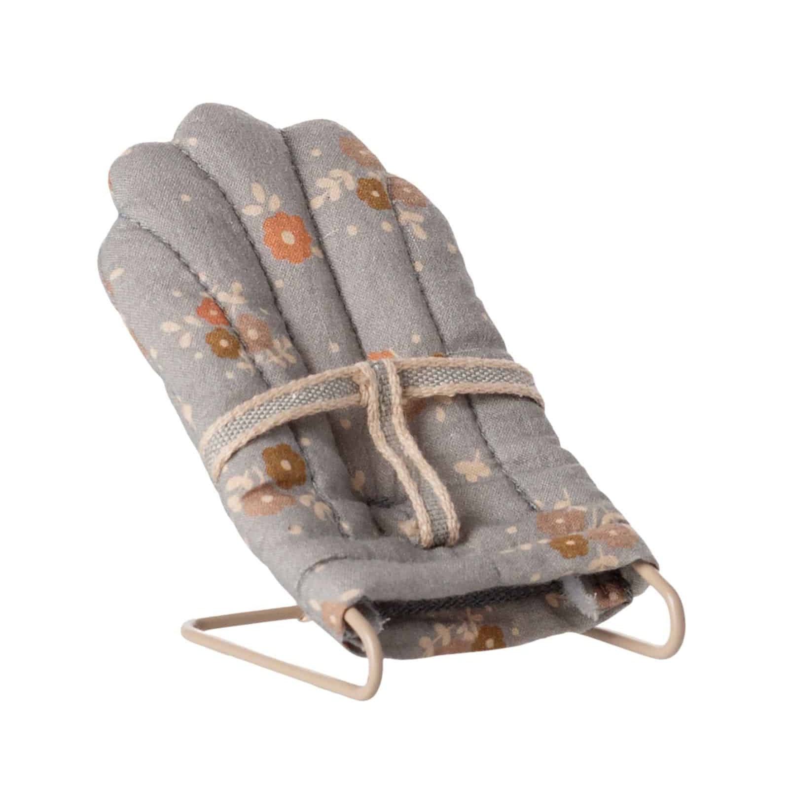Detta är en söt liten babysitter i metall och mjukt tyg, perfekt för mössungar och babykaniner. Ett fint tillbehör som gör leken mer verklig och omtänksam. Passar perfekt i Mailegs värld.