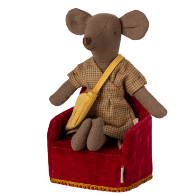 De söta möss från Maileg behöver så klart någonstans att sitta och vila. Den passar alldeles perfekt till möss, men små nallar och dockor får så klart också vara med. Fåtöljen levereras ihopfällt och är lätt att samla.