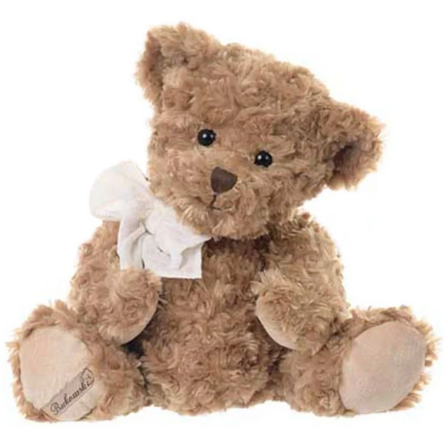Ludwig har lurvig brun päls och vit rosett om halsen. Han har svarta popnitade pärlögon och en mörkbrun sydd nos.
