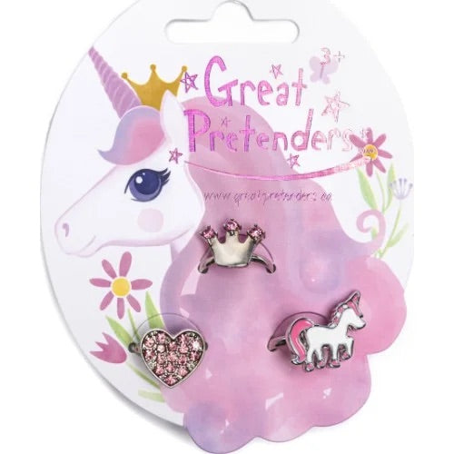 Ge leken en gnistrande touch med detta vackra ringset från Great Pretenders! Setet innehåller tre unika ringar med fantasifulla motiv: