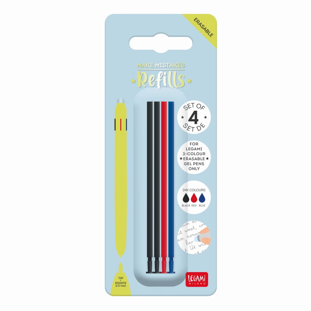 Refill, Suddbar Gelpenna, 4-pack , Svart/Blå/Röd - Legami
