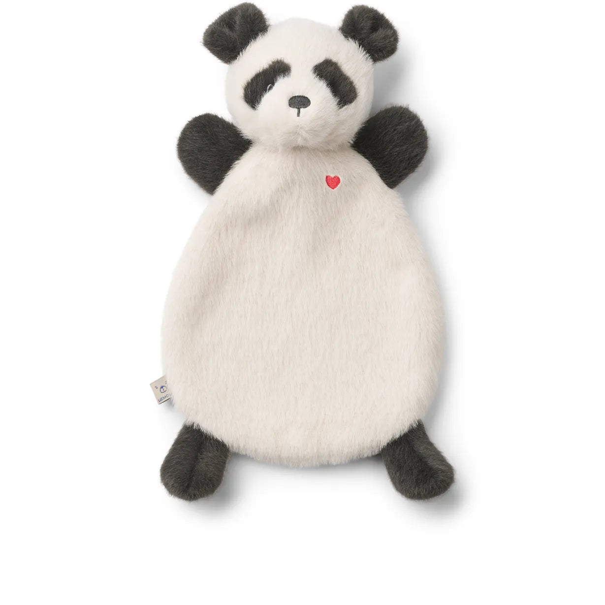 Liewood snuttefilt i pandaform – mjuk vit och mörkgrå plysch med gulligt pandauttryck. En mysig sovkompis för ditt barn.