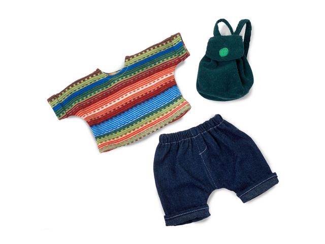Back To School-setet för Rubens Cutie-dockan är det perfekta klädvalet för att rivstarta början på ännu ett skolår. I setet ingår, en randig, flerfärgad tröja, ett par jeans och en grön ryggsäck med kardborreknäppning vid väskans öppning.