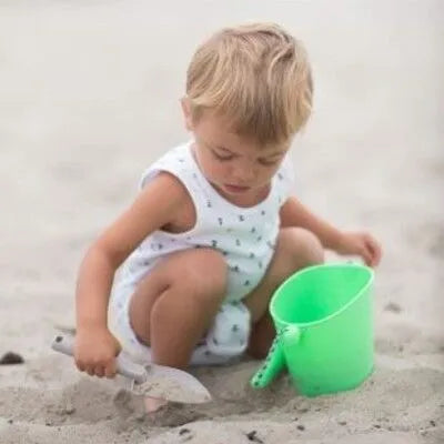 Rolig hink i härlig färg som t tack vare att den är av mjukt silikon kan mosas, rullas, vikas och hoppas på utan att den går sönder. Bär vatten till lekarna eller samla sand, stenar, snäckor eller annat spännande i denna hink när ni är ute på äventyr. Handtaget är mjukt och skönt att bära den i. Rulla ihop den och sätt ett gummiband om så tar den ingen plats i väskan på resan! En leksak som passar perfekt på stranden och i sandlådan