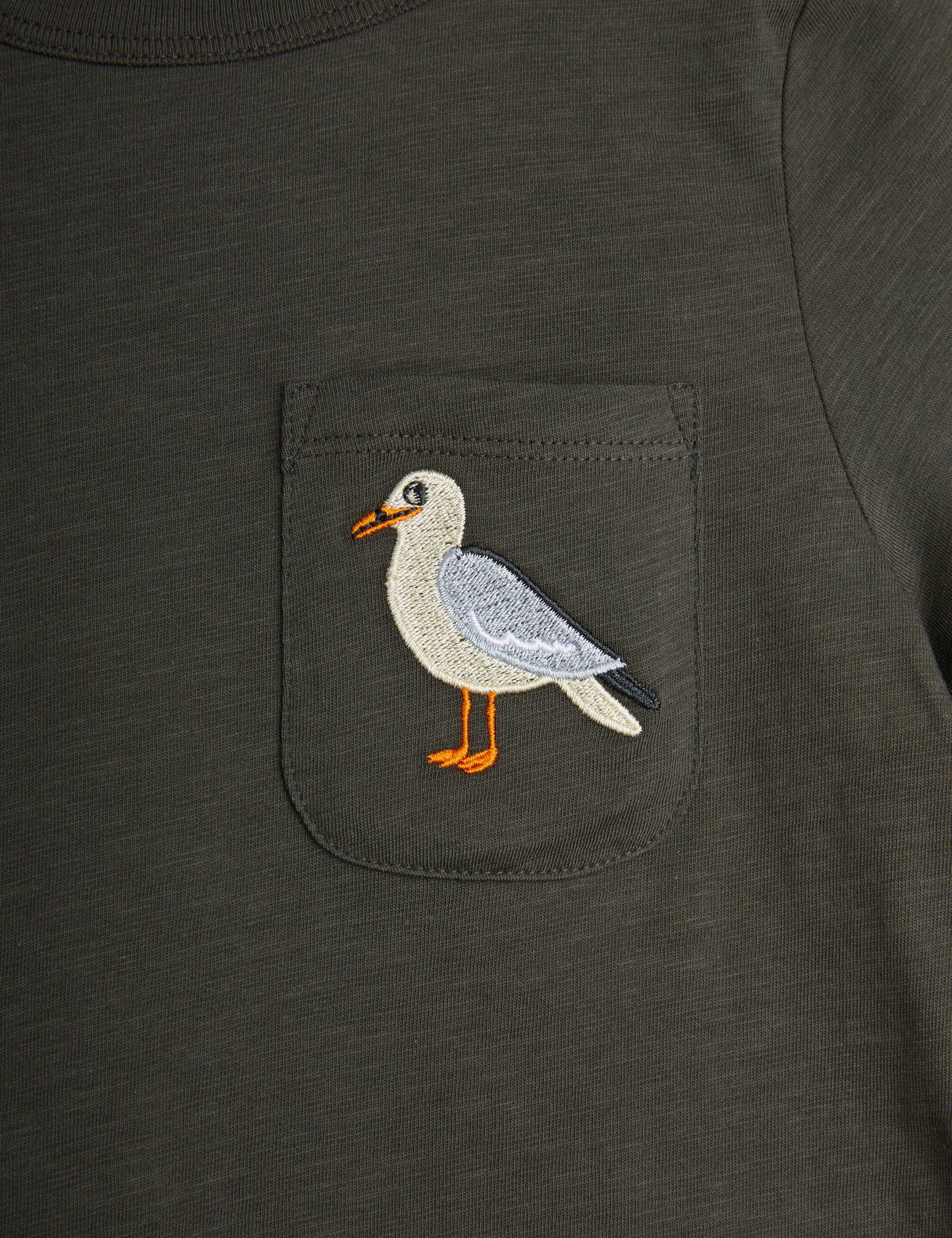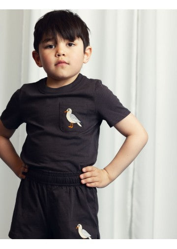 Svart T-shirt gjord i 100 % GOTS-certifierad ekologisk bomull. Designad med en bröstficka dekorerad med ett seagull märke.