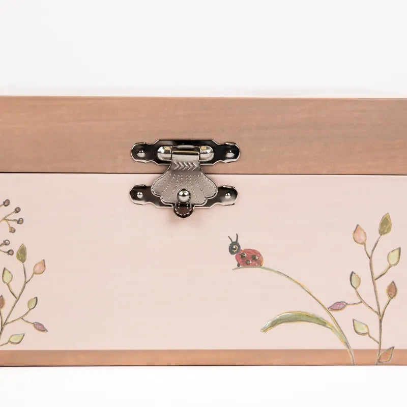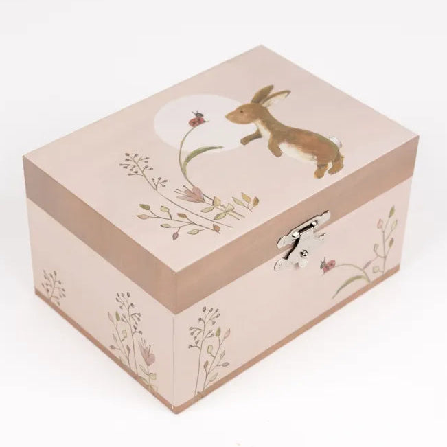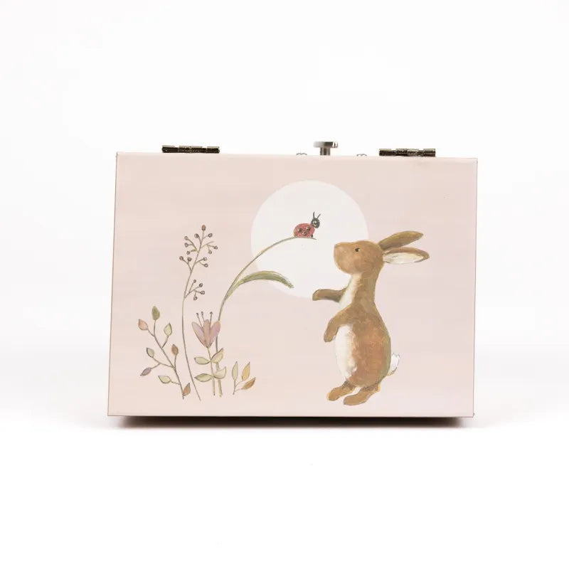 Låt fantasin flöda! Detta bedårande smyckeskrin har en vackert illustrerad kanin & nyckelpiga och öppnas till ljudet av den fina melodin ”För Elise”.