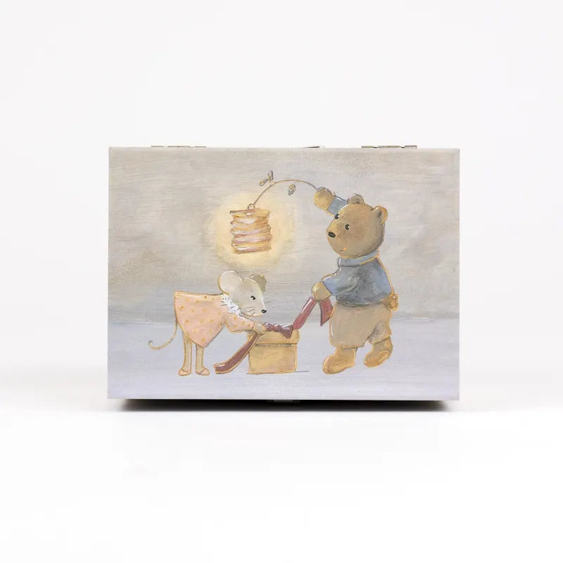 Låt fantasin flöda! Detta bedårande smyckeskrin har en vackert illustrerat kompisgärn och öppnas till ljudet av den fina melodin ”Moonlight Sonata”.