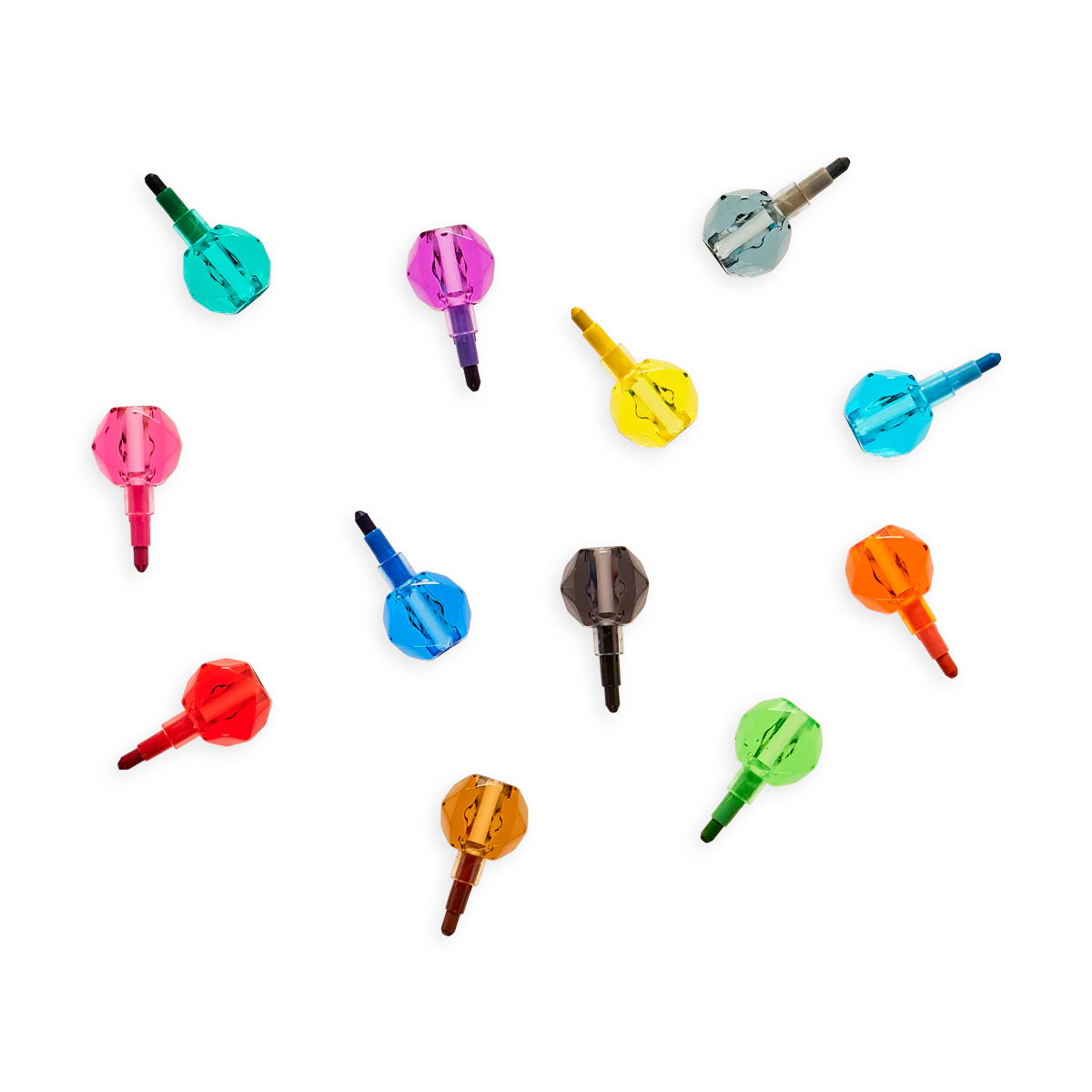 Färg, form och kreativitet i ett! OOLY Charm to Charm är stapelbara kritor formade som små ädelstenar i olika färger. Varje "charm" innehåller en färg och kan enkelt sättas ihop med andra för att skapa sin egen unika ritpenna. Kritorna har spetsig form för detaljerad färgläggning och bjuder in till fantasifull lek.