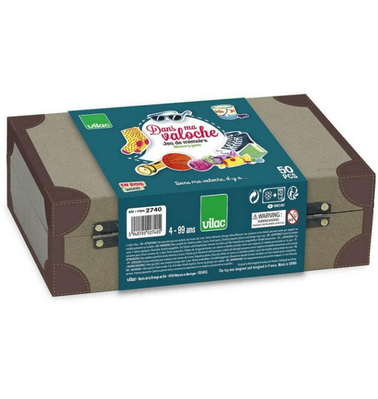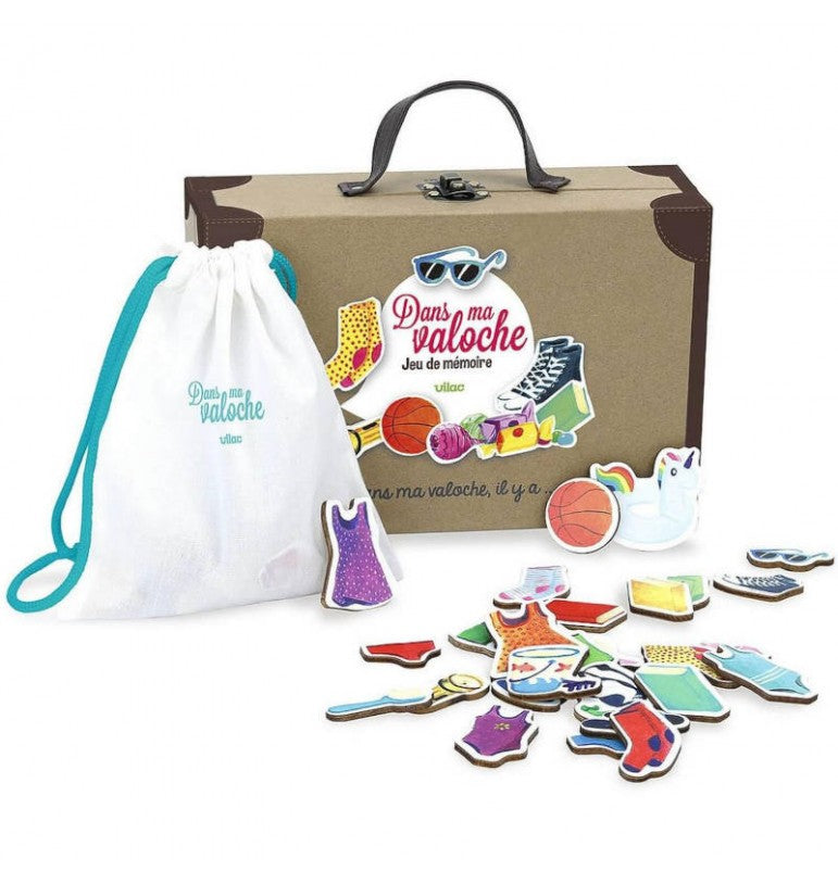 Detta träminnesspel Dans Ma Valoche är perfekt för hela familjen, med barn från 3/4 år och uppåt. Vilac återupplever detta traditionella minnesspel: "I min resväska finns det ...".