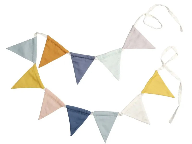 Fabelab mjuka girlang i regnbågens färger. Bedårande och mycket dekorativ girlang i mjuka pastellfärger för att pryda varje barnrum. Girlangen är gjord av 12 mjuka flaggor i fina färger.
