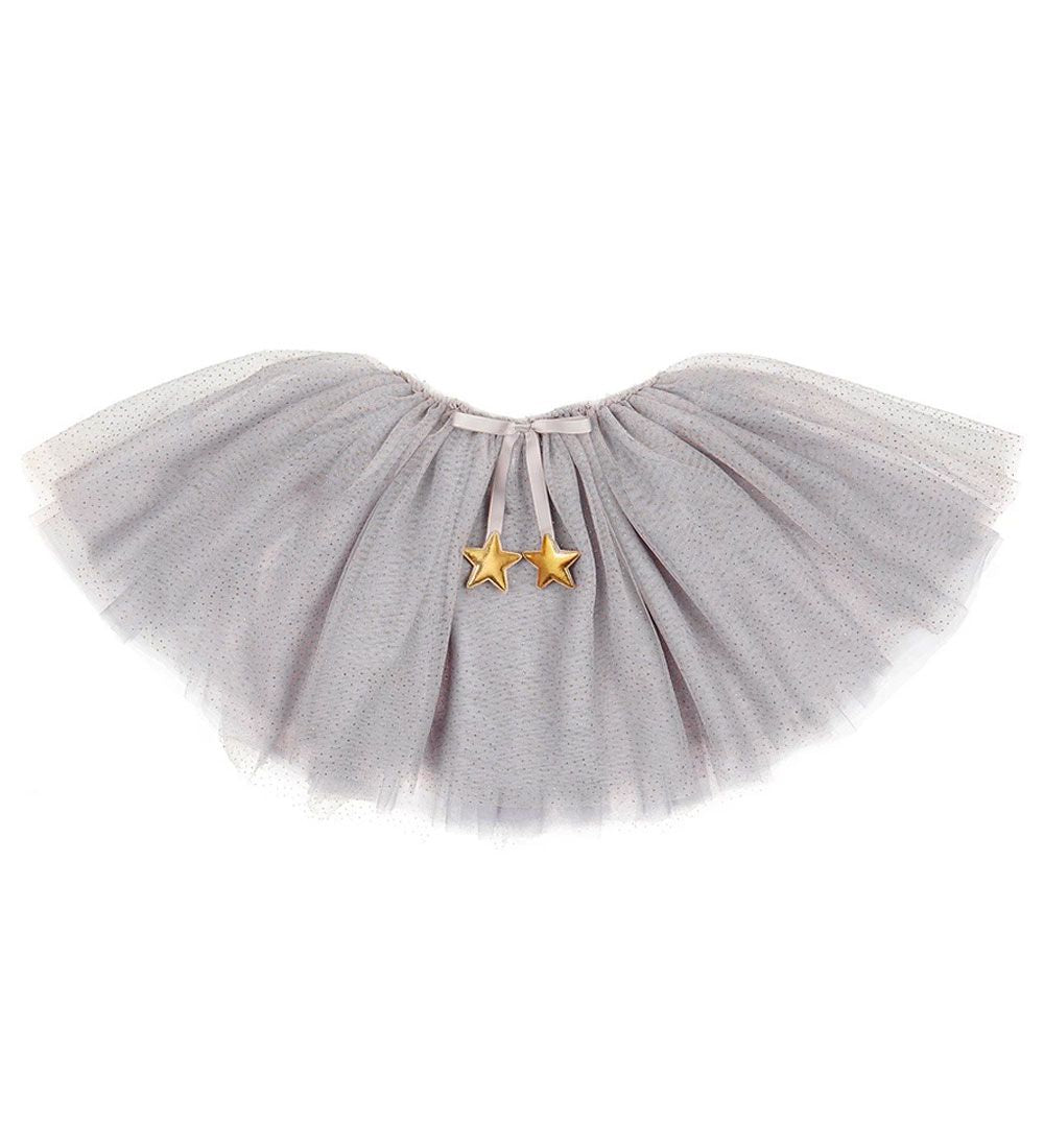 Den här eleganta grå tyllkjolen är tillverkad i sex lager tyg och har resår i midjan för bekväm passform. Den passar lika bra till fest och maskerad – kombinera gärna med ett par matchande vingar och en trollstav – som till vardags, med glitterglasögon och en t-shirt.
